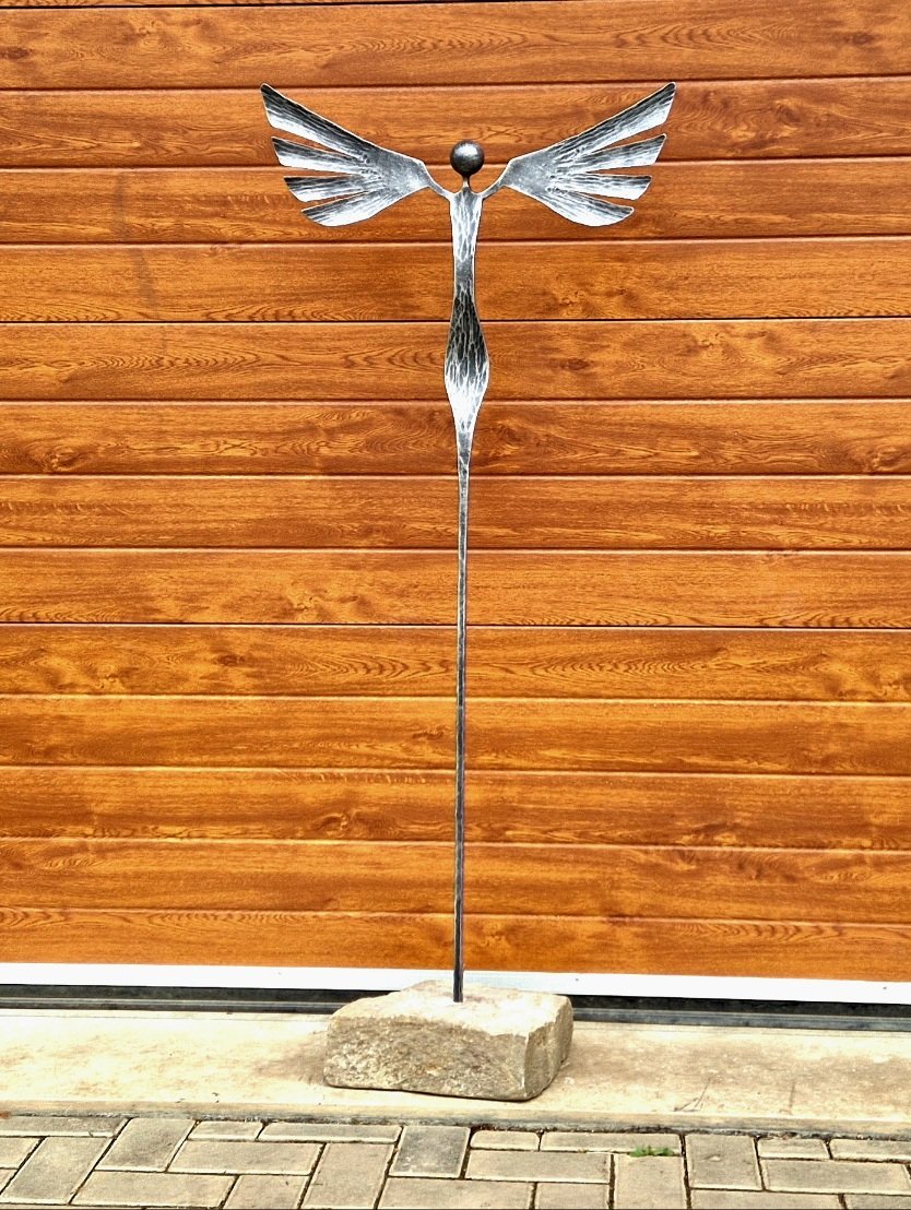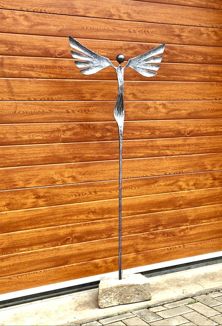 Ručně kovaný anděl – majestátní ochránce vašeho domova i zahrady (125-130 cm).